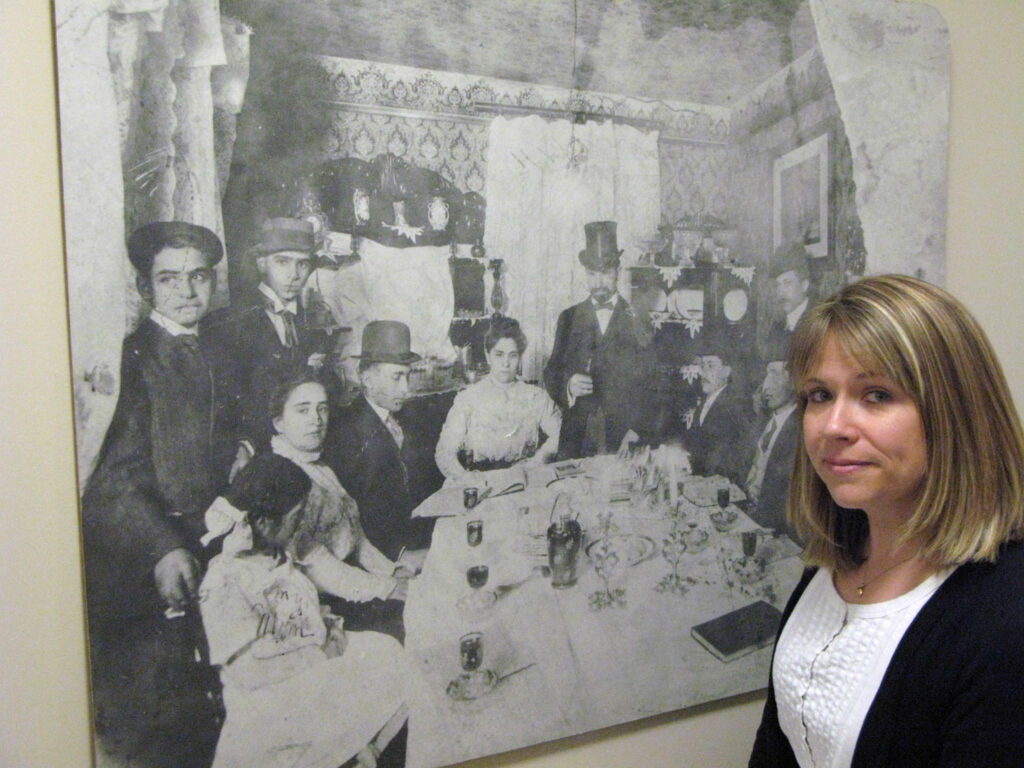 Above: Current OJA executive director Dara Solomon stands beside image of early Passover seder, the sort of historic photo the OJA has become adept at collecting and preserving.