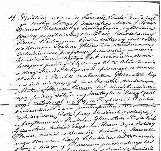 It has been about twenty years since I had my first “Eureka!” moment as a genealogist. Several smaller discoveries led up to this great moment. First, I discovered that my great-grandfather, Harris Glickstein, had been born in the town of Konin, Poland; second, that his father’s name had been Rafael; third, that our family name had originally been Glitzenstein.