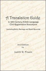 ◊ A Translation Guide to 19th-Century Polish-Language Civil Registration Documents (including Birth, Marriage and Death Records). 3rd Edition, by Judith R. Frazin. Published by the Jewish Genealogical Society of Illinois, 2009. Hardcover, coil-bound, 464 pages.
