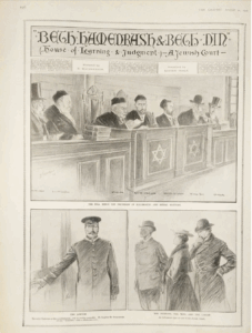 Our representative recently had an ample opportunity of witnessing a manifestation of this spirit of the Ghetto at the house of Dayan Chaikin on Saturday evening, soon after the Havdalah ceremony. The venerable Dayan had hardly finished the home service, making his “distinction between things holy and things profane,” when a stream of humble visitors poured in soliciting his advice and help on matters in connection with the war; such as sending money to starving relatives in Russia, the means of ascertaining their whereabouts, about lost relatives, naturalization, and how to enlist their sons for military service in the army.